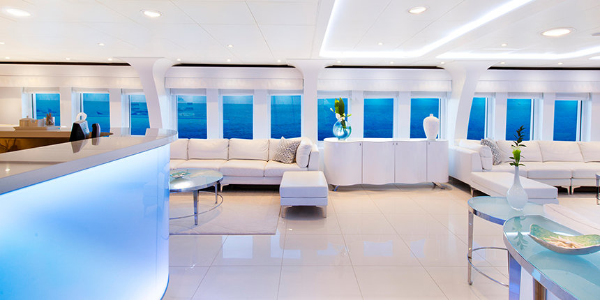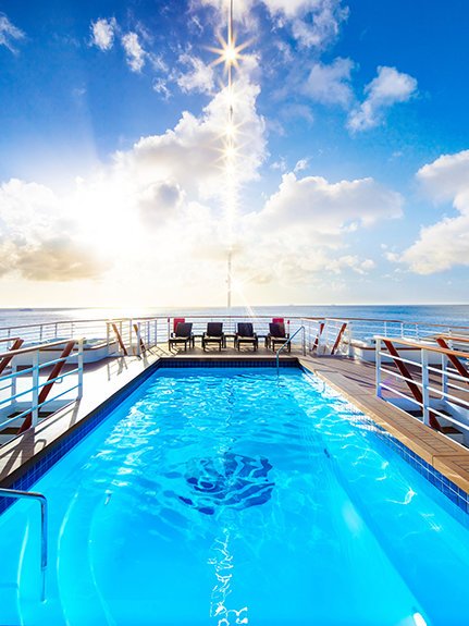 POOL DECKThe Pool Deck is another carefully-crafted Freewinds space—for enjoying a refreshing tropical beverage from the Sky Lounge, a swim in the lap pool or a contemplative moment in a Caribbean sunset.