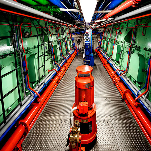 The Engine Room is a model of order and efficiency, including every system color coded in accordance with specifications laid out by L. Ron Hubbard for engineering proficiency.