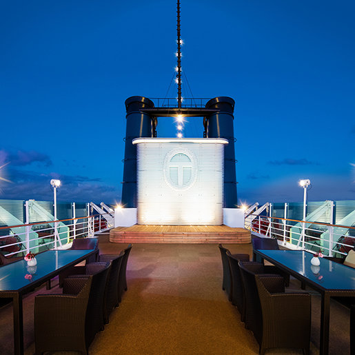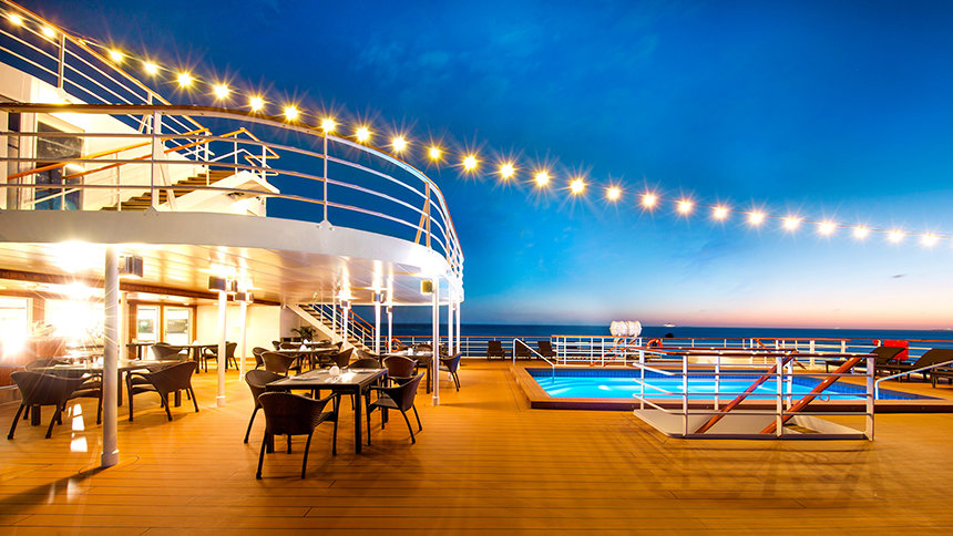 PROMENADE DECKThe Promenade Deck is an always-bustling passenger hub on the Freewinds—for activities under the Caribbean sun or the equatorial stars.