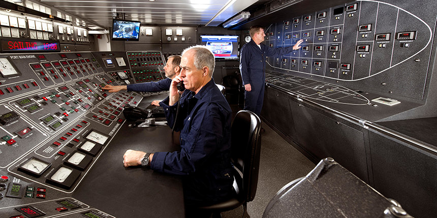 ENGINE ROOMThe Engine Control Center is the soul of the Freewinds. The center is fully digitized and displays the ship’s vital signs at a glance—engine temperature, oil pressure, fuel, water and lubricant levels. The control center houses a closed-circuit viewing system that enables engineers to monitor performance levels of all critical machinery powering the Freewinds. Manned by 9 certified Engine Room Officers and 4 Chief Engineers, it is among the most highly trained and skilled crews on the 7 seas.