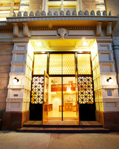 Among the historic features the Church of Scientology returned to their original, late 19th century condition are the corbel crown molding and leaded art glass that adorn the entryway.
