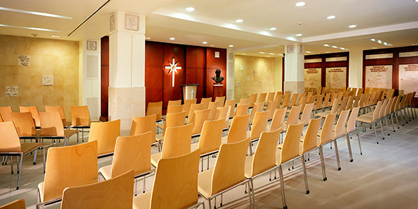 The spacious chapel of the new Scientology Mexico Ideal Organization—where parishioners and their guests gather for congregational gatherings, including Sunday Services, Weddings, Naming Ceremonies and other events.