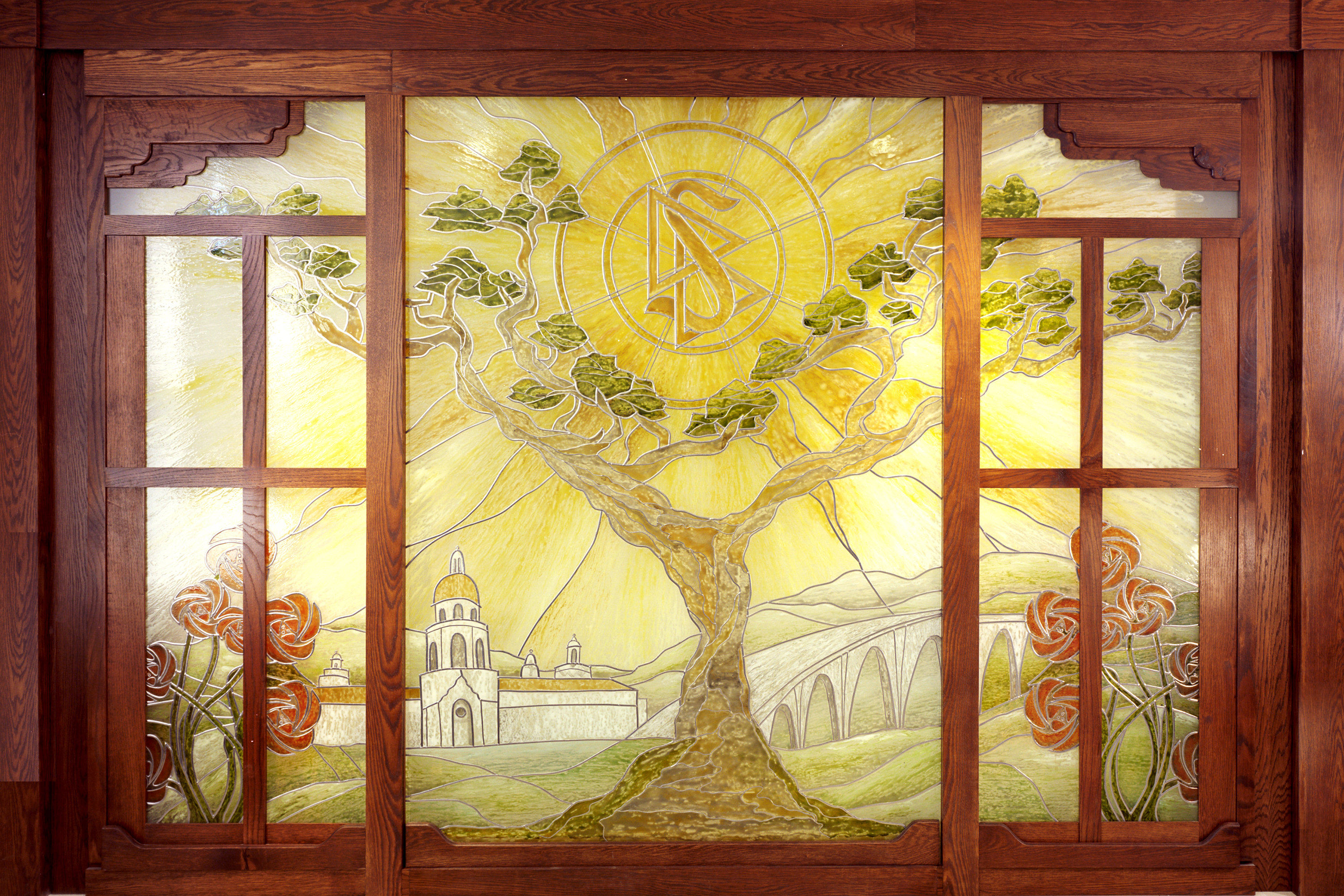 The Purification Center The mural pays homage to Pasadena’s heritage with a Tiffany-inspired stained glass depiction of this city’s landmarks and the roses for which it is world famous.