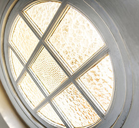 THE CHURCH FAITHFULLY restored the work of the skilled craftsmen who left their indelible mark on the turn-of-the-20th century residences, including the Arts and Crafts styled portal windows of textured art glass.