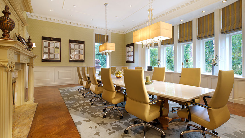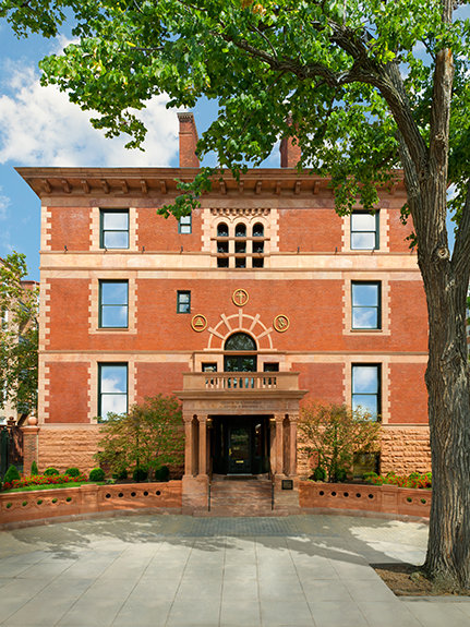 The arched double doors off the second-floor foyer lead to a terrace built atop the front portico, offering views of Dupont Circle and the surrounding “Old City” of Washington.