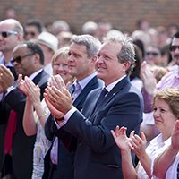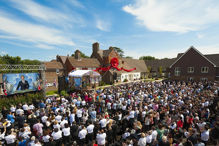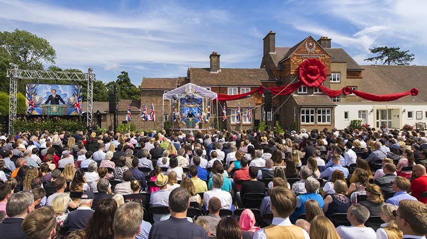 宗教技術中心理事會主席主持剪綵儀式。山達基人從英國各處前來參與開幕典禮。