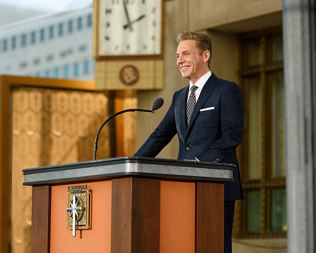 大衛.密斯凱維吉先生是Scientology宗教的領袖,他引領開幕儀式,正式開啟大門。 在開幕致詞中,密斯凱維吉先生談到這個時刻的重要性,以及這間全新的Scientology教會所代表的意義, 也就是:「沒有暴動,也不強迫人們改變信仰;但我們希望人們能在這個高度困惑與充滿機械論的社會中,站穩腳步。 如果他能做到,也許接著就能恢復快樂、真誠、愛與仁慈,也就是他一開始就擁有的特質。」
