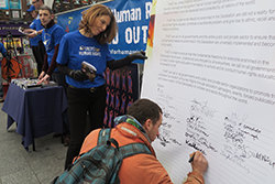 奇歐女士進一步描述,在人權團結聯盟的旗幟之下,過去12個月所出現的全國性人權運動:「在『算我們一份』的教育計畫中,每個男生和女生都收到你們的人權手冊,也參加我們的反霸凌研討會。事實上,我們四十八名志工都在使用這項計畫,從科克到利默里克,從高威到都柏林。有了教育人士套組,他們正提供研習班與演講,無論他們去到哪裡,都留下人權的種子。有將近三千名學生結業,我們正在建造一支快速發展的人權大軍。」