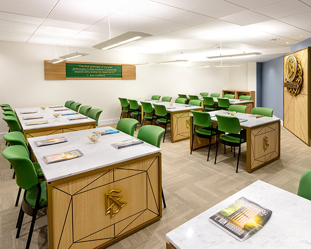新山達基教會與社區中心,為所有訪客介紹戴尼提與山達基,首先映入眼簾的是大眾資訊中心。這裡的展示版包含500多部短片,全方位呈現山達基宗教的信仰和實踐,以及創始人L. 羅恩 賀伯特的生平與傳承。