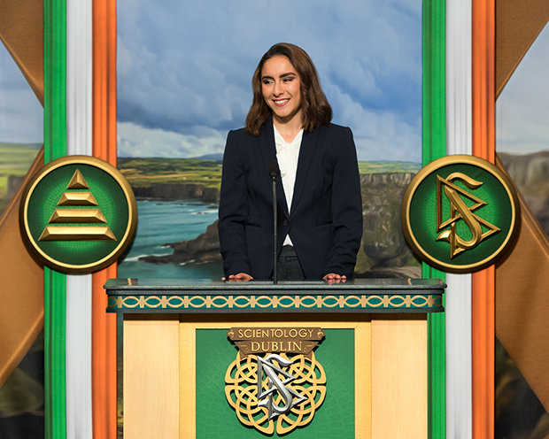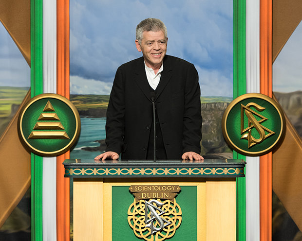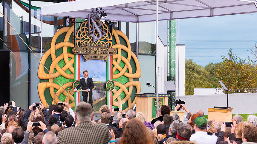 「所以對愛爾蘭的永恆與卓越: 你讓文學存活了500年。你建造了美國,可能甚至發現了它。你教導人類平等,與如何在缺乏尊嚴下,過著有尊嚴的生活。你教我們,美有至高無上的價值,而這是你們所代表的。所以,我們在你身邊引以為傲,我們今日為都柏林的新山達基教會與社區中心開幕。」