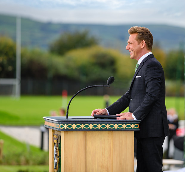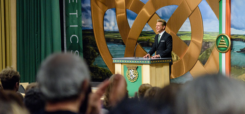 「今日我們榮耀創始人L. 羅恩 賀伯特所珍愛的國度,他說該國的人民非常溫暖,即使天氣偶爾不是如此。」山達基教會領袖大衛.密斯凱維吉先生,告訴著參加典禮的民眾。「如果那還不夠,讓我引述葉慈先生的話:『許多次,人類在他的兩個永恆間生活與死去……而古愛爾蘭完全知道。』」