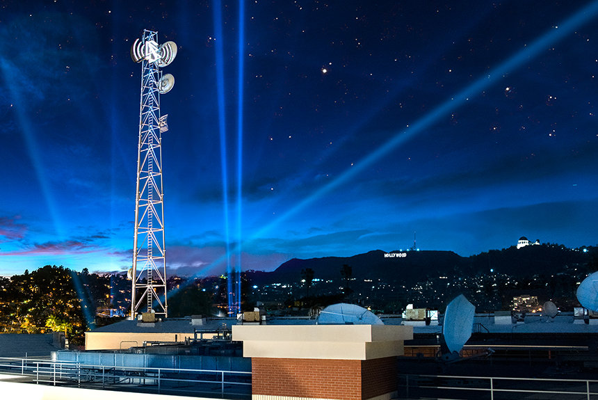 加州好萊塢,這座向外擴散的城市,就在它的中心點,於日落大道上150呎高之處,工作室將通訊基地台矗立於此;上面印著一個符號──廣播電波圍繞著兩個三角型和英文字母S。這個巍峨的標誌大膽地將自己介紹給這星球上的娛樂通訊之都,這一切只意味著一件事。