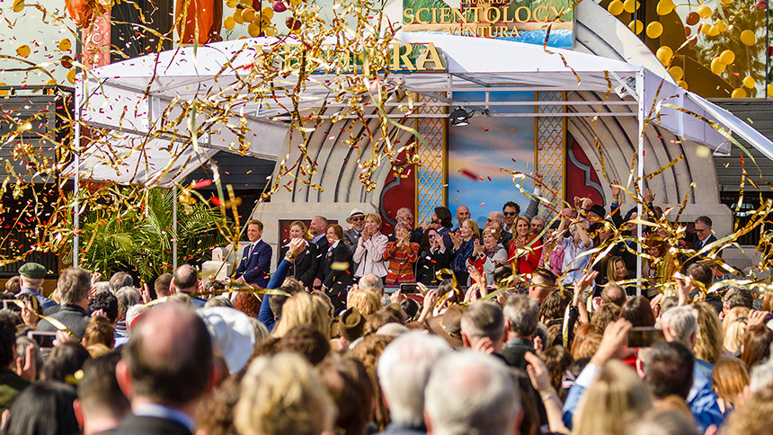 伴隨著微微飄動的太平洋氣息,這個場合充滿歡樂的氣氛。Scientology宗教的教會領袖,大衛.密斯凱維吉先生主持開幕儀式,他告訴現場觀眾,他們期待已久的大浪即將抵達,讓每個人可以開始乘風破浪:「完美的大浪,永無止境的大浪,每個人都可趕上這股大浪,將能力與不朽的靈性提升到另一個高度。當然,不是每一個人都知道海岸線在何處終止,也不知道一生的旅程由何處開始。這裡向你提出自由的邀約,並提供如何搭乘這股巨浪的課程,讓你徹底改頭換面。」