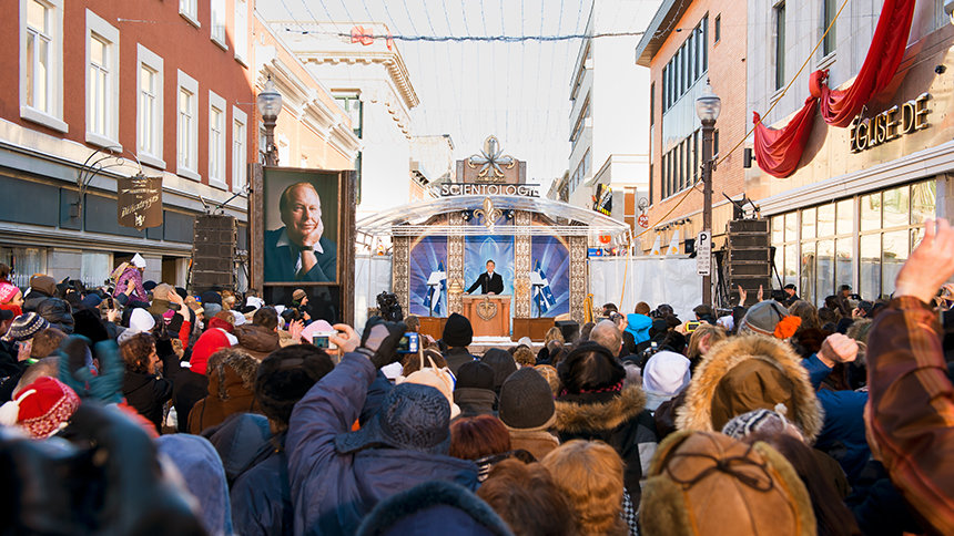 2010年1月30日星期六,來自加拿大、美國的1500位山達基人和貴賓,把魁北克下城聖諾奇區核心地,聖約瑟夫街665號前的街道,擠的水洩不通,慶祝魁北克山達基教會的開幕典禮。