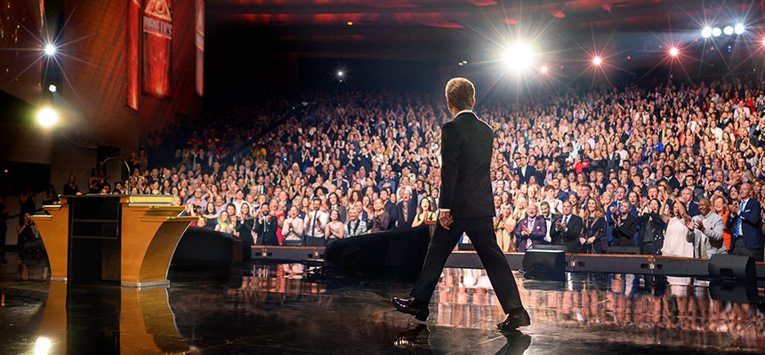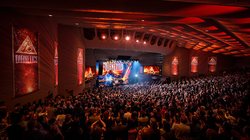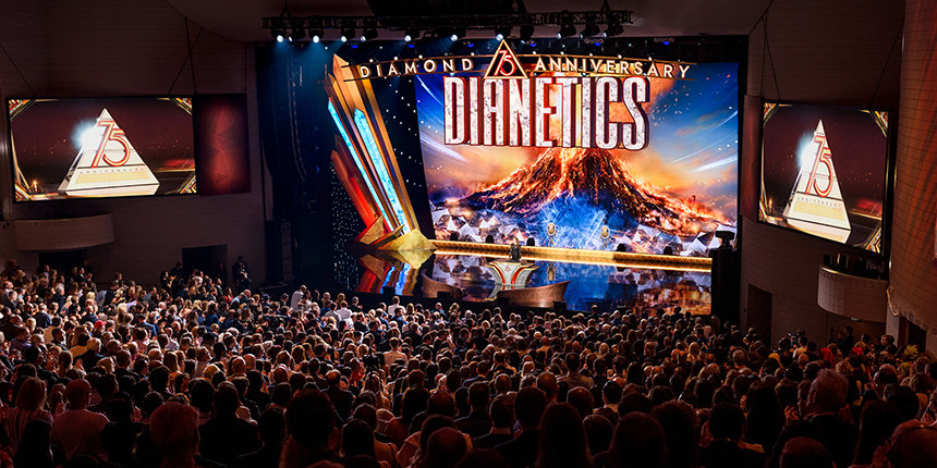 當Scientology宗教的教會領袖,大衛.密斯凱維吉先生走上舞台時,現場觀眾們紛紛起立大聲鼓掌喝采,而這持續了很長一段時間。「就在75年前,有一本叫做《Dianetics》的書,釋放出一股震撼全球的力量,」他開場時說道。「今晚的慶典,我們要向地球上最強大的力量致敬,這是一股追求理智和生存的力量。