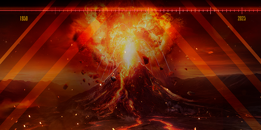 一座火山在銀幕上爆發後,觀眾緊接著發出震耳欲聾的歡呼聲。