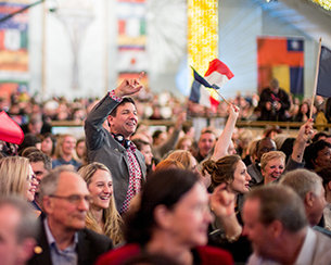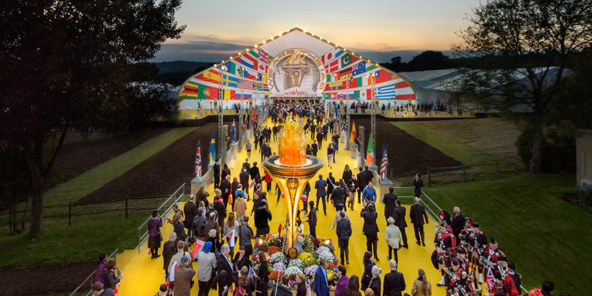 當秋風撫過綿延起伏的地形時,來自世界各地盛裝打扮的出席者,進入莊園和家人、朋友、新認識的人打招呼。星期五下午7點,數千名群眾齊聚在大帳篷,參加週末最重要的晚會。