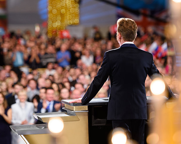 山達基教會宗教領袖大衛.密斯凱維吉先生說:「歡迎來到輝煌燦爛的IAS慶典。就此而言,自從我們給出對人類的誓言之後,我們如今光輝四射,無與倫比,所以,這一切是不證自明的──也就是說不管是誰,只要侵犯了他人的權利,便是侵犯了所有人的權利;那些對人權暗藏不良意圖,導致所有人無法踏入自由大門的人,若無法向最低層的人表示尊重,就是無法對全人類表示尊重。然而,相對而言的是,我們也誓言認可所有人具有的「神奇力量」,因此造就了IAS的威力。不僅如此,這麼說吧,如果無法做到,就不要做出這樣的誓言,而我們當然做得到。當然,在今晚落幕前,各位將會對此確信無疑。