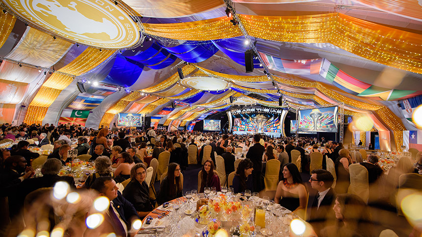 轉眼間,大帳篷變成了舉辦IAS守護贊助者晚宴的會場。每年舉辦典雅耀眼的正式晚宴,來向最新的守護贊助者,以及他們支持人道主義活動與組織的奉獻精神致意,那正是國際山達基人協會的正字標記。