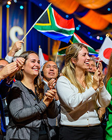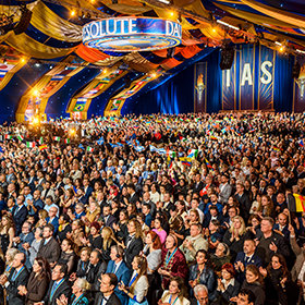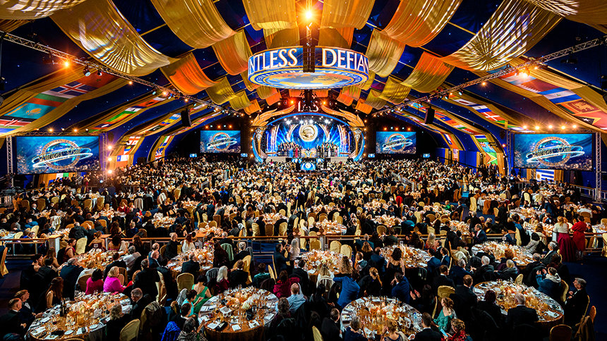 星期六晚上,大帳篷變身為一座令人讚嘆不已的優雅舞廳,舉辦一年一度的IAS守護贊助者晚宴。在這場盛大的正式晚宴中,密斯凱維吉先生表揚他們持續提升支持的力量,讓我們得以在六大洲不斷擴展我們的運動。以歌聲點亮夜晚,這場晚會由葛萊美獎得主馬克.伊夏和一群傑出的表演者一同演出。