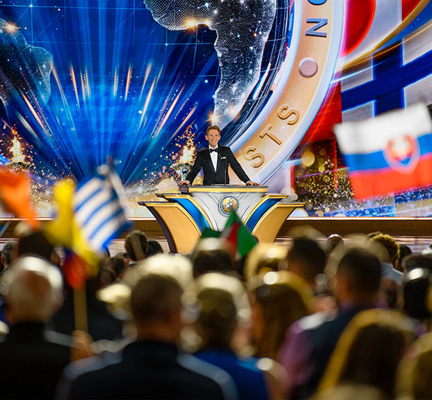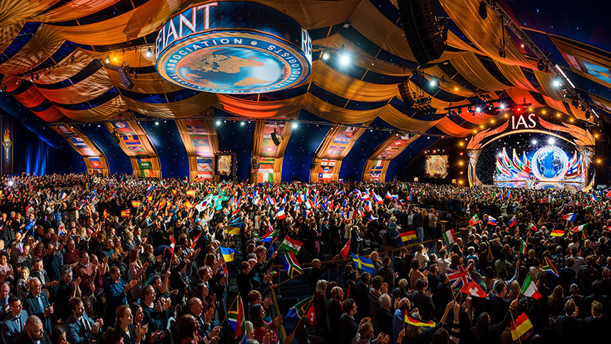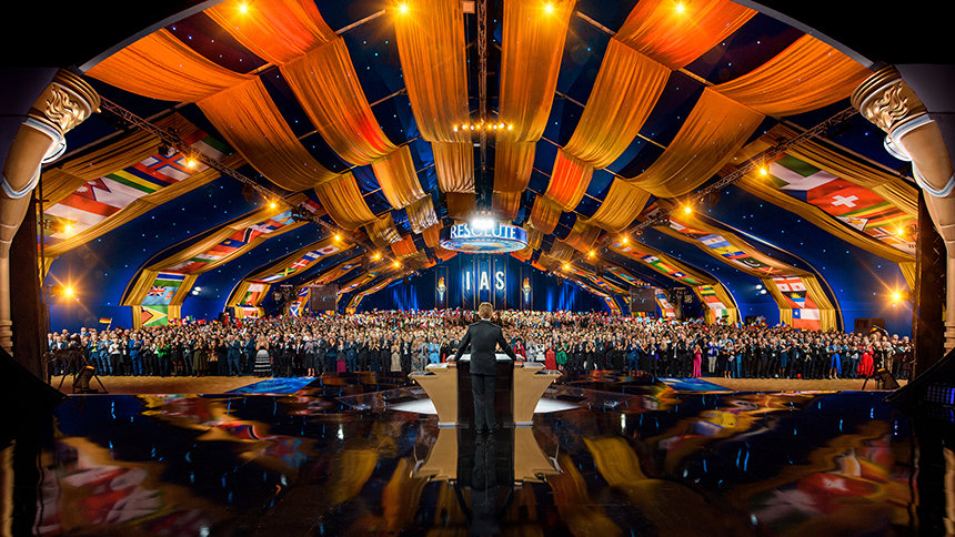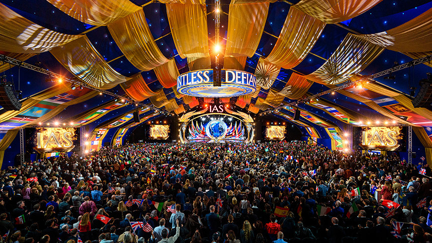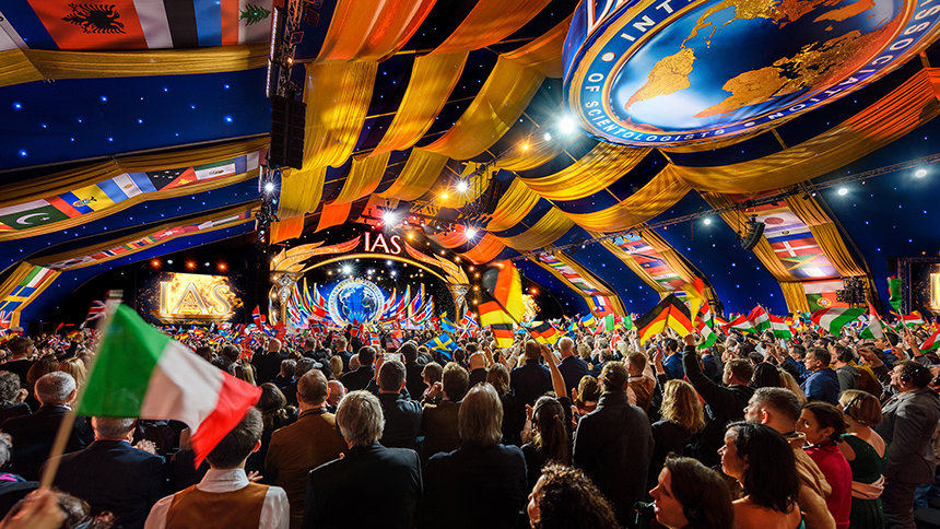 典雅與華麗相互輝映,盛會在此展開,來自六大洲的IAS會員齊聚在Saint Hill,Scientology創始人,L. 羅恩 賀伯特的故居,就位在歷史悠久的西薩西克斯郡。人群沿著紅地毯優雅地走進大帳篷,心中滿懷喜悅與期待,來自世界各國的旗幟在空中飄揚,每個人都把目光都投向舞台,熱切迎接盛會的到來。