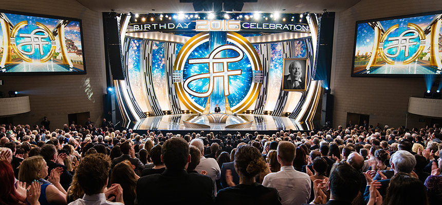 2016年LRH生日晚會在向L. 羅恩 賀伯特和他贈與的自由永恆文學遺產的致敬中結束。