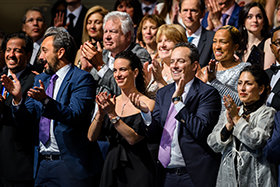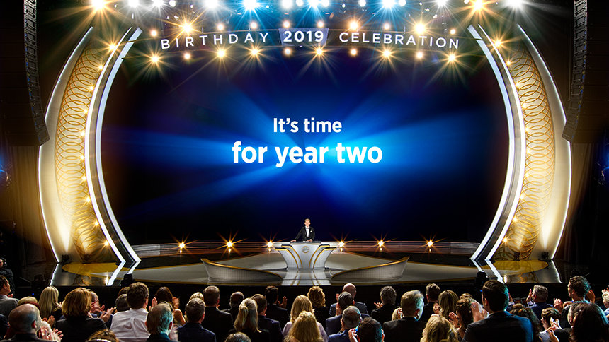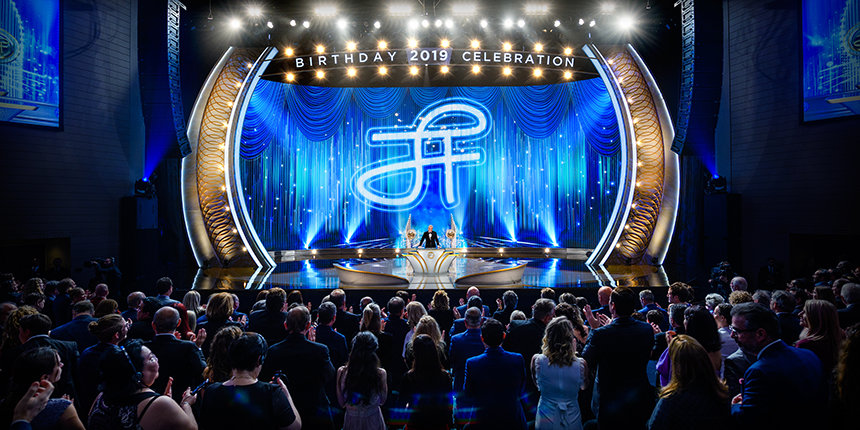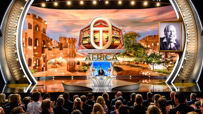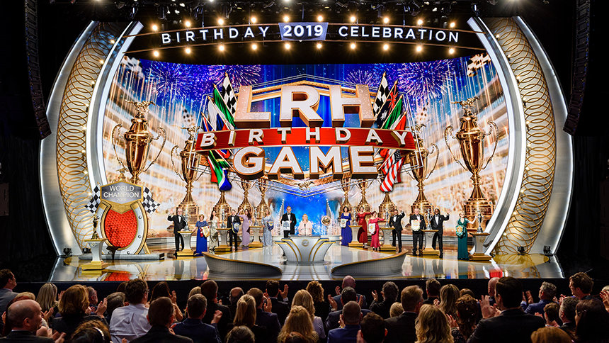 當晚接著快速前進到2019年的頒獎典禮,而這是今晚晚會的精神所在:慶祝擴展。在四十多年前,當時有人詢問LRH想要什麼樣的生日禮物。他的答案是以提供靈性自由為名,Scientology機構和中心能興盛繁榮。數十年來,全球各地的Scientology教會為此制訂一場遊戲,共有四個聯盟相互角逐,朝終點線狂奔。今年,走上舞台領取獎盃的各聯盟冠軍,都有著打破紀錄的亮眼表現。獎盃得主分別是來自德國的Scientology烏爾姆中心、來自德國的斯圖加特Scientology教會、英國高階聖崗機構,以及歐洲洲區聯絡辦公室。