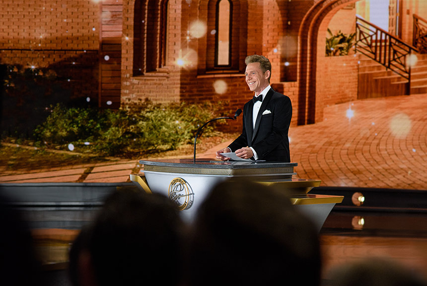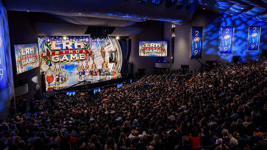 華燈初上。走過紅地毯。攝影師捕捉這盛大的一刻。這裡的人們說著各種語言,大家興奮地交談著。喧攘而忙碌。來自70個國家,數千人聚集在佛羅里達州,清水市的蘿絲愛克大會堂。所有人全都盛裝出席,他們準備好慶祝這場晚會。這場著名的年度晚會,為期兩天,一同慶祝我們宗教創始人:L. 羅恩 賀伯特(LRH)致敬。有許多事值得慶祝,從一場打造歷史的宏偉開幕典禮,到教會橫跨全球的擴展,以及Scientology聯播網下一季的新節目,即將創造另一個高峰,所有一切全都強調出Scientology的擴展。