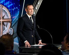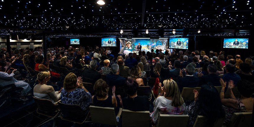 「你問,參加2018年OT高峰會代表什麼?」大衛.密斯凱維吉先生,山達基教會的宗教領袖,在晚會一開始時問了這個問題。 「你問,如果過去30年你都有參加處女航,你會看到什麼呢? 好,有長版的回答,也有簡短的回答。 但不論如何,答案是:一切。」