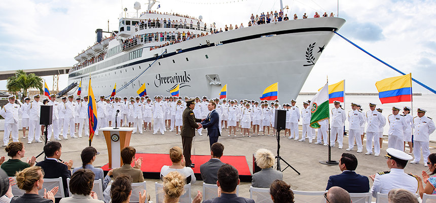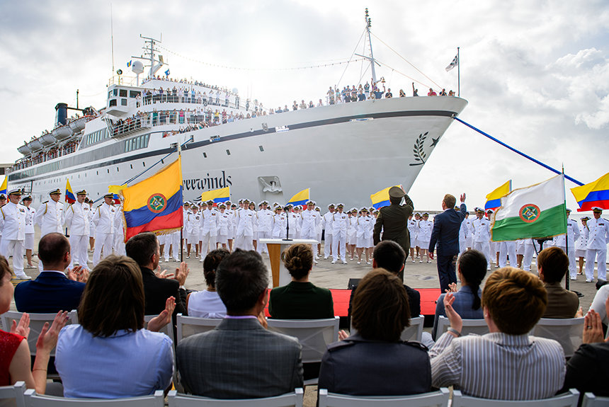 這場正式的授獎典禮,在處女航的啟航站暨終點站:巴貝多的布里奇敦舉行。哥倫比亞國家警察代表,卡洛斯.拉米洛.米納.布拉沃上將,親自為密斯凱維吉先生戴上獎章,該獎的全名為「傑米.拉米雷斯.戈麥斯總督察長獎章」。 頒發的奬章代表哥倫比亞國家警察的最高榮譽,代表:「膽量、勇氣與誠實」,並「展示出最高的理想、道德與品格標準。」 頒發獎章給密斯凱維吉先生時,米納上將宣布:「我們有十分充足的理由將這個獎章頒發給山達基這個偉大組織的領導人。 全國警察對於密斯凱維吉先生所提供的訓練、引導與尊重都十分讚賞,在此向他示意,並表達衷心的感謝,不只是哥倫比亞軍警官員,更包括每個因L. 羅恩 賀伯特的技術和他所啟發的人道主義活動而受益的每一位公民。 感謝你們寶貴的支持,協助我們打造一個全新的社會,並讓我們成為你們的一份子。」 賀伯特先生曾說:『我們正在拯救個體……我們在永恆中運作。』」