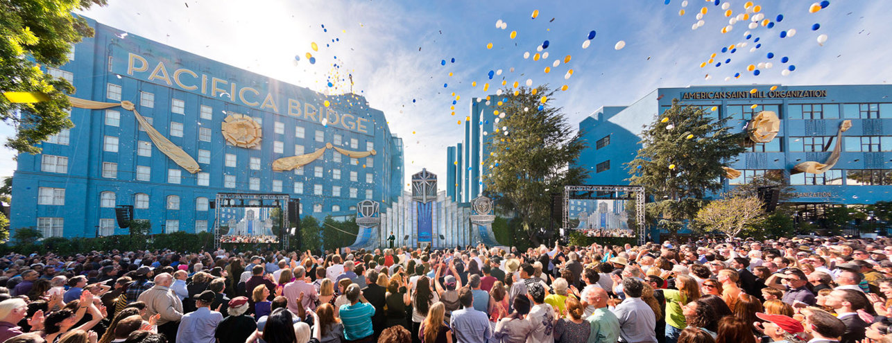 在神殿大會堂舉行的洛杉磯晚會,為黃金年代技術第二波發行以來的這12個月,教會前所未有的擴展,予以致意。