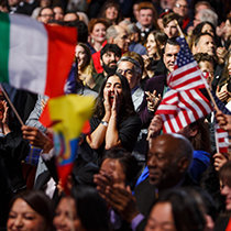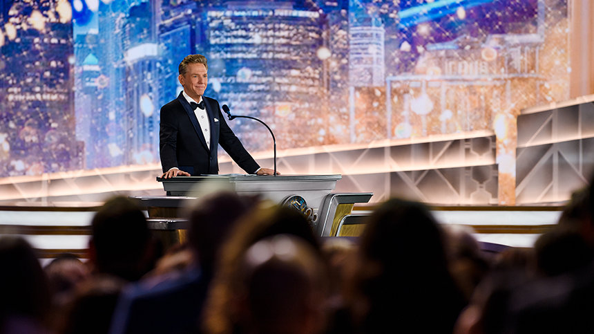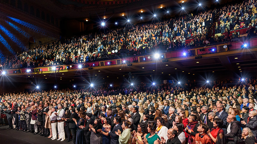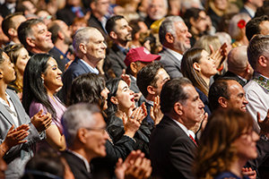 在洛杉磯的市中心,體現了壯觀的新年場面──透過讓人目眩神迷的方式,把優雅、活力與眾人的期望完美結合在一起。盛裝出席,赫赫有名的場地,充滿令人興奮的氛圍。共有6,500多位出席者魚貫進入神殿大會堂,每個人都已經準備好迎接這個令人難忘的夜晚。