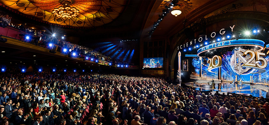 神殿大會堂被數千人擠得水洩不通,一同慶祝這充滿卓越里程碑的一年,並向規模空前的破紀錄成就致上敬意,一切引領眾人朝Scientology的黃金未來前進。
