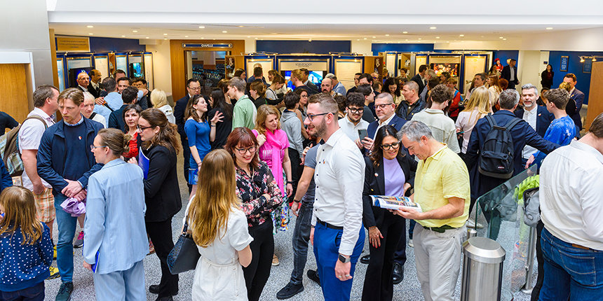 不論是室內,還是在人潮洶湧的大帳篷中,當人們從超大螢幕上,看到宗教技術中心理事會主席,大衛.密斯凱維吉先生,親自為這棟宏偉的全新中心舉辦開幕典禮時,觀眾們爆發出最熱烈的歡呼聲。