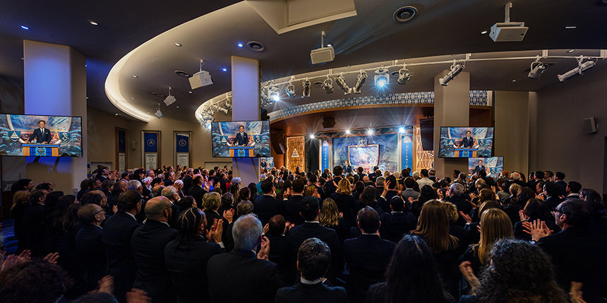 想知道誰在推廣跨宗教活動方面,持續獲得進展嗎?那就是你們──Scientology教會!你們持續致力奉獻,要讓所有宗教團結在一起。」葛拉馬迪可夫博士接著說: 「因此,各位持續打造未來的和平、未來的夥伴關係,以及未來的興盛繁榮。事實上,不用說,在今日的各種宗教運動中,各位引領前鋒。」