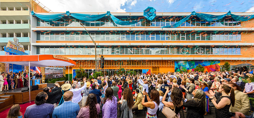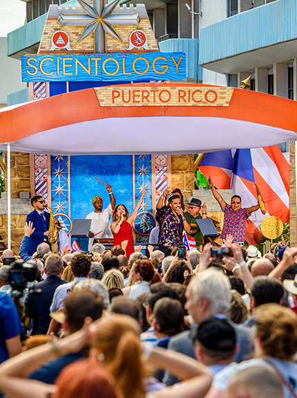 在一個晴朗的週日午後,當地居民、達官貴人,以及Scientologist齊聚在活力四射的市中心,參加一場充滿bomba和plena傳統樂聲的慶典。舞者身著色彩絢麗的服裝,熱情高漲,島上獨有的紅、白、藍旗幟在海風中驕傲地飄揚。波多黎各的聖胡安是美國領地中歷史最悠久的城市,而現在它成為世界上最年輕的城市,慶祝Scientology教會的盛大開幕慶典。
