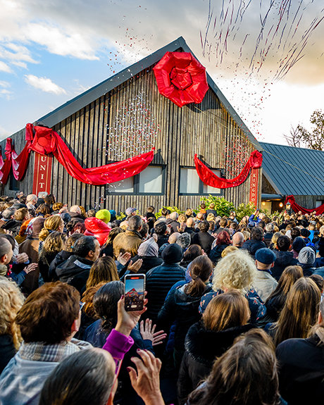 離歷史悠久的聖崗莊園和Scientology英國高階機構只有幾步之遙,群眾在此齊聚一堂,歡慶全新建築的啟用典禮,這裡將專門為英國這間教會的牧師提供宗教諮商與訓練服務。